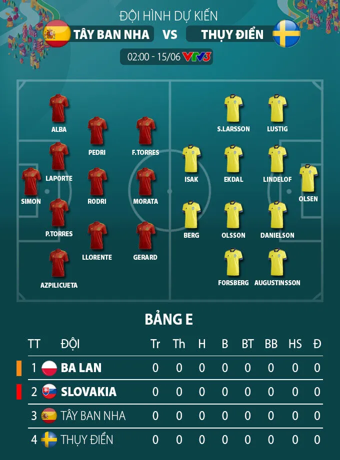 Ưu thế sân nhà sẽ khiến sự vượt trội của Tây Ban Nha so với Thụy Điển tăng lên theo cấp số nhân. Lưu ý, Thụy Điển không được đánh giá cao ở giải đấu năm nay. Nền bóng đá này đang trong giai đoạn suy thoái, do không còn sản sinh ra những tài năng sáng giá để kế tục lớp cựu binh. Đặc biệt lần này Thụy Điển còn không có sự phục vụ của siêu chiến binh Zlatan Ibrahimovic bởi chấn thương. Ngoài ra, họ cũng không có sự phục vụ của 2 trụ cột Dejan Kulusevski và Mattias Svanberg vì dính Covid-19. Tây Ban Nha cũng vắng tiền vệ Sergio Busquets và nhiều khả năng cả trung vệ Diego Llorente vì nạn dịch nói trên. Tuy nhiên, trong tay HLV Luis Enrique đang có quá nhiều ngôi sao chất lượng để thay thế.